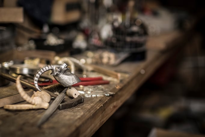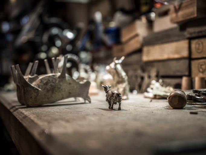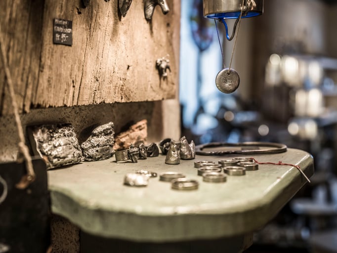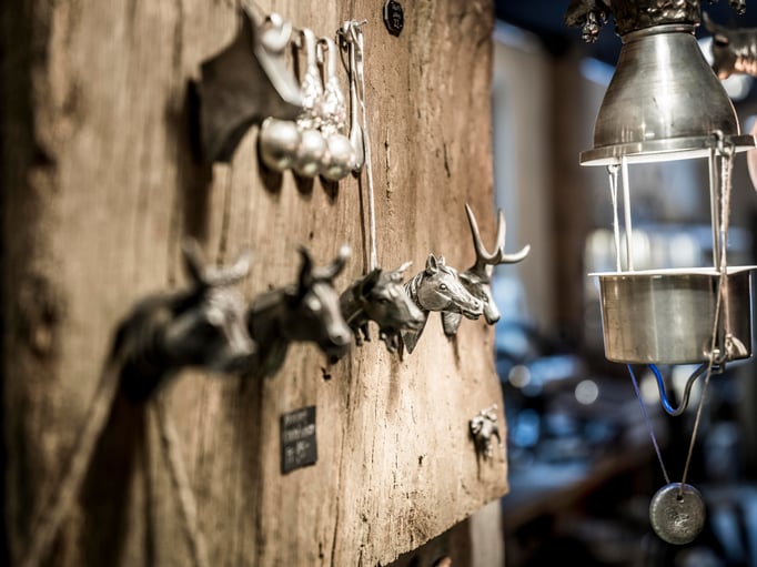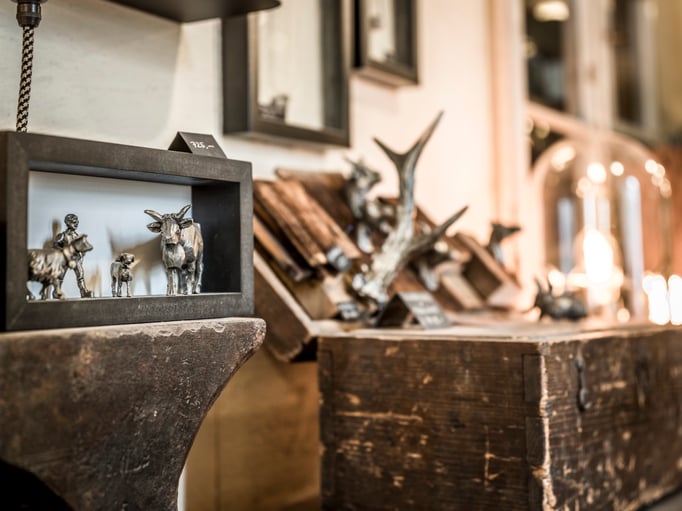 Vor Jahren konnte Roger Dörig die Bestände der einstigen St.Galler- und späteren Appenzeller-Präge erwerben. Unsere Vision: nicht die herkömmlichen Becher und Kannen herstellen, sondern Neues zu wagen. Mit Hilfe von alten gusseisernen Formen oder neu hergestellten Silikonformen giessen wir heute Gegenstände wie Fondue-Gabeln, Gürtelschnallen, Schmuck, Lampen und vieles mehr.